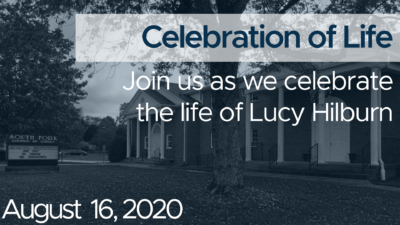 The memorial service for Lucy Hilburn will be held in the Family Center today, Sunday, Aug 16, at 2 PM. The tone for the service be filled with rejoicing for her life well run, and the reward she now enjoys with our Father.